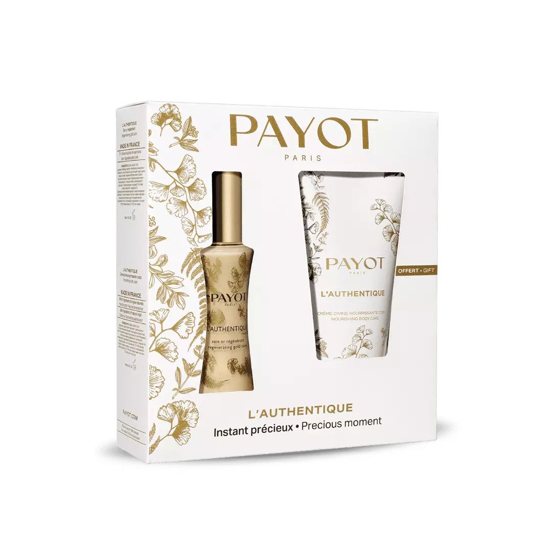 Сет Payot: L’Authentique включва два луксозни продукта – регенериращ крем за лице с златни микрочастици и хидратиращ крем за тяло. Този елегантен сет е създаден от Payot, известен със своите иновативни формули и висококачествена грижа за кожата.