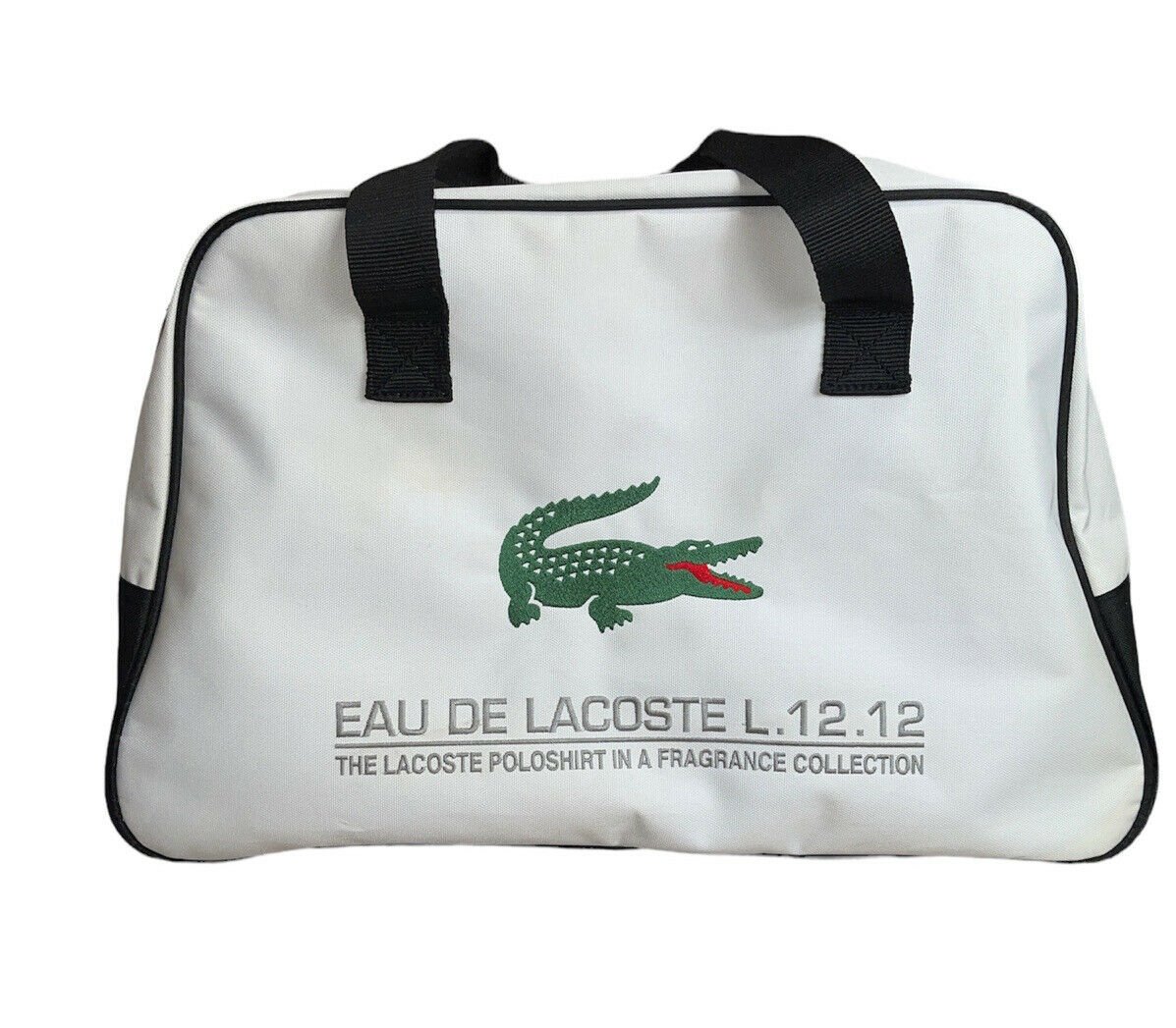 Еау дьо Лакост L.12.12, с вдъхновение от легендарния LACOSTE пикей поло шит, представя стилният и практичен текстилен дуфъл пътнически/фитнес чанта. Тази бяла унисекс чанта е перфектното допълнение към вашия модерен гардероб.